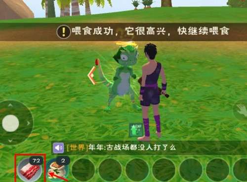 6、然后给绿蜥蜴喂饲料,并一直吃到冒出爱心,就说明驯服成功,可以捕捉了。