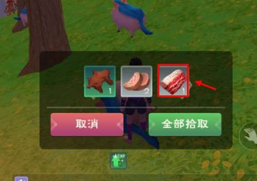 3、玩家可以直接前往野外击杀生物,并得到8个肉块。