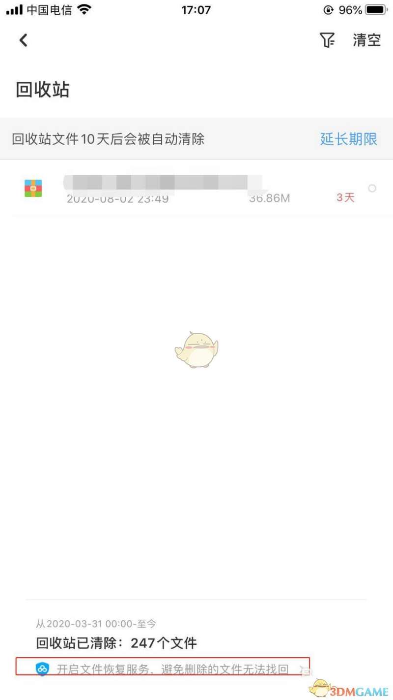 3、在“回收站”界面中,点击下方的“开启文件恢复服务,避免删除的文件无法找回”选项。