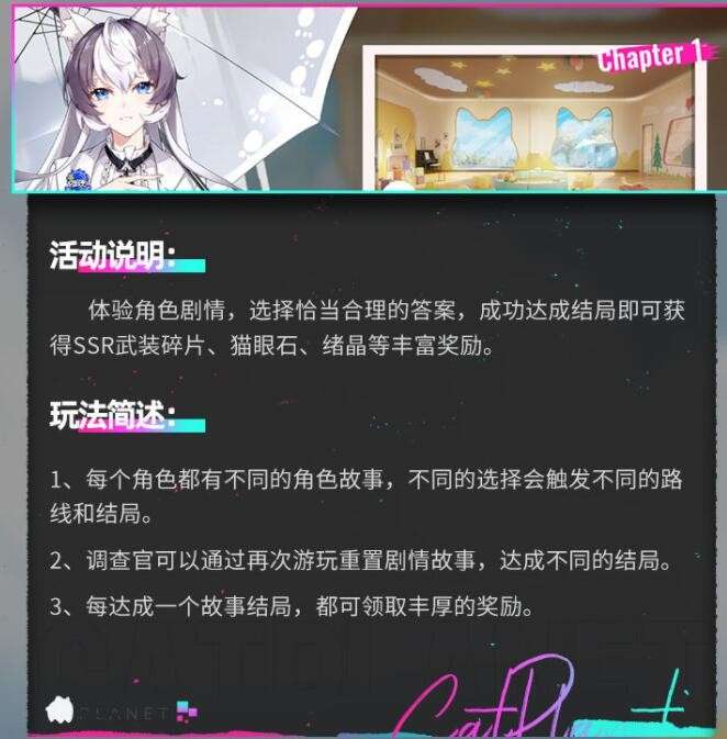 体验角色剧情,选择恰当合理的答案,成功达成结局即可获得SSR武装碎片、猫眼石、绪晶等丰富奖励。