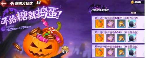 点亮南瓜灯后所获取的草莓糖果和巧克力糖果,可在糖果商店中兑换「高级召唤券」、「自选传奇伙伴碎片」、「精良钢材」、「万能强化玉」、「特级洗练药水」等丰厚奖励。
