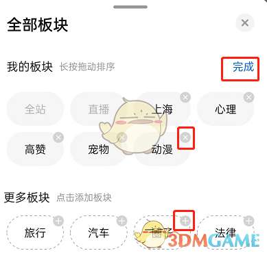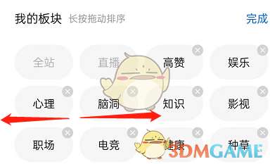 3、最后长按板块还可以拖动先后排列顺序。最后点击完成即可。