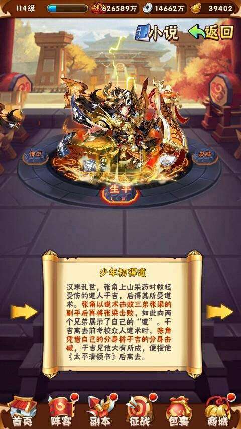 技能升级:重点升级张角的主动技能与被动技能,确保其在战场上的影响力以及团队战中的作用。