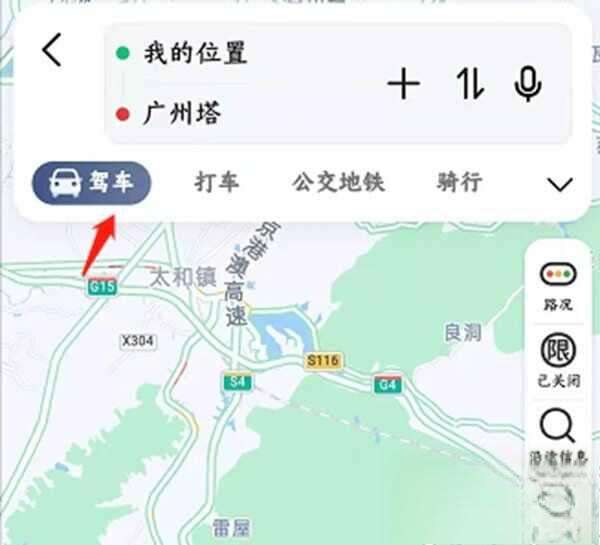 第三步:此时地图会自动为你推荐多种路线,点击路线上方,可以选择交通工具,如下图所示。
