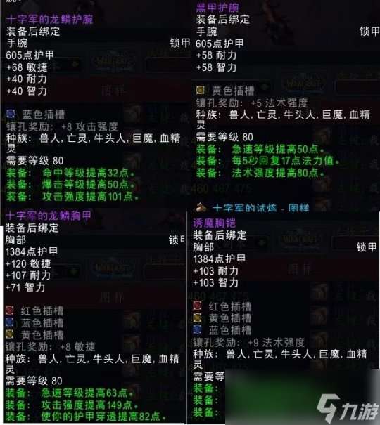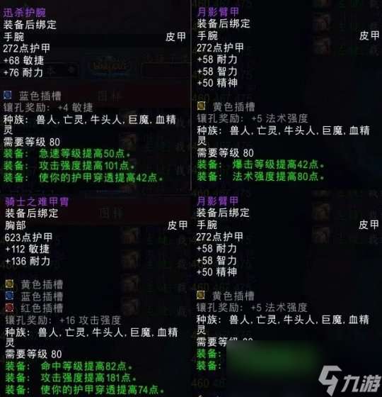 物理锁甲护腕属性中规中矩但比奥杜尔的232护腕强初期可以做一个,衣服装等太低不配碰瓷增强萨和猎人的奥杜尔BIS配装。两件法系锁甲急速五回属性是为奶萨设计,护腕不如25H霍迪尔掉落的寒冬强风护腕,衣服可以做但没必要性价比太低了。