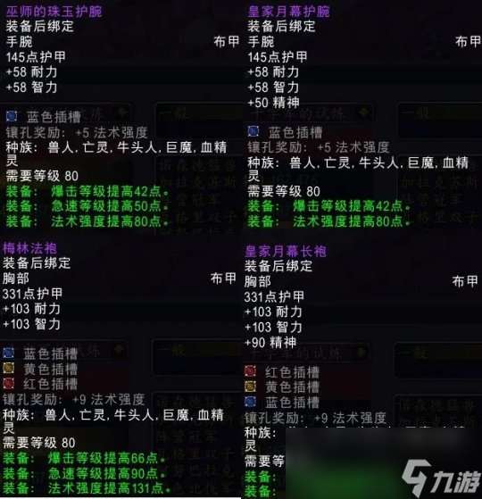 布甲输出两件属性都是暴击急速法强,别说法师术士了就是奶骑看到都要流口水,尤其是梅林法袍那绝对这批制造业装备中的明星装备颇有点阳炎之袍的意思。精神暴击的两件就差了点意思,护腕不如理智之握,衣服又撼动不了4T8的地位,属实是大号不需要小号没必要。