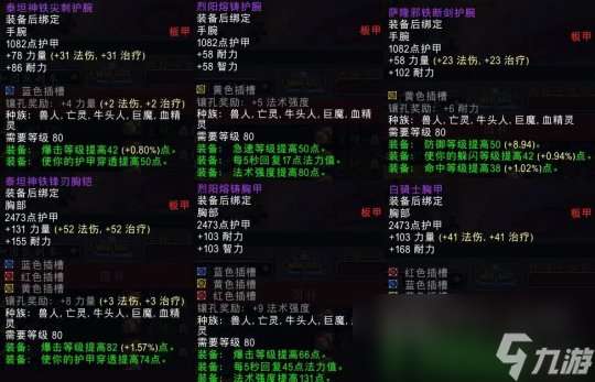 板甲破甲护腕属性略逊于同为245装等10H加拉克苏斯大王掉落的虚空领主腕甲,原因是后者多4点破甲且珠宝插糟为红色,不过即使如此这件准毕业级别的护腕也是相当值得狂暴战冰DK入手的。破甲胸属性也相当不错,狂暴战和冰DK对4T8的依赖程度不高可以作为过渡装。治疗板甲护腕不如25H霍迪尔掉落的寒冬强风护腕,衣服不如25H拆卸者掉落的虔诚者胸铠,直接略过。两件防御板甲则属于没有太大亮点的过渡装备,性价比一般。