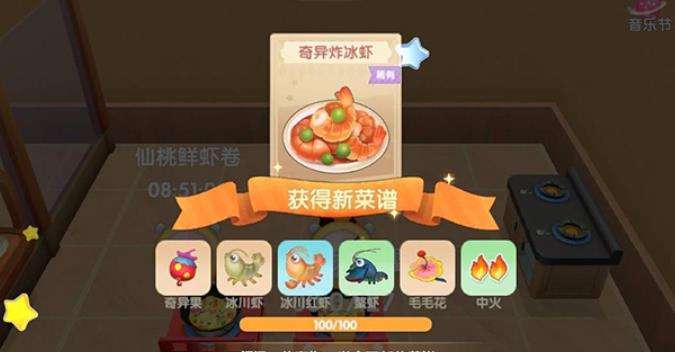 奇异果种子的价格是二十四个摩尔币,售卖可获取三十四枚摩尔币,可以净赚十块。当拥有了果实后,就可以前往厨房开始做菜了。第一道菜是奇异炸冰虾,需要一份奇异果,一份冰川虾,一份冰川红虾,一份鳌虾,以及一朵毛毛花制作而成。其中虾类都需要前往冰川去钓,可以使用从商店里购买的鱼饵。而毛毛花则是毛毛树开出的花朵,需要其他玩家为我们浇水才能开花。