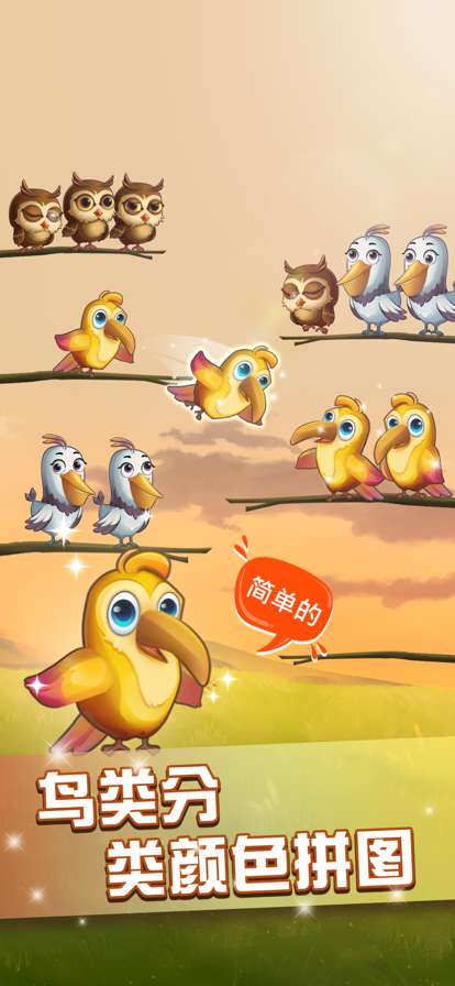 鸟类分类是一款轻松有趣的配对游戏,这里的小鸟憨态可掬,而且样式多种多样,用户要做的,就是点击小鸟左右移动,当相同的小鸟站成一排,你就能完成配对,顺利进入下一关了。
