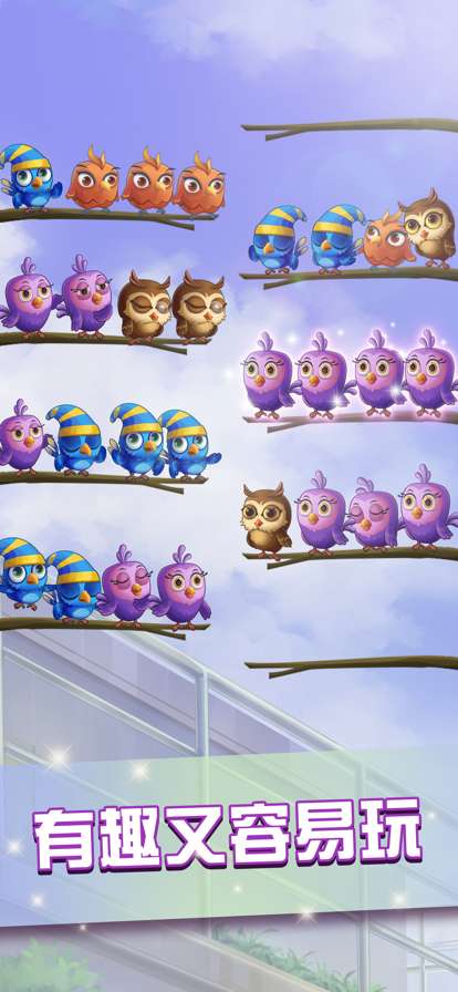 - 完成所有鸟类的分类后,您将赢得关卡- 请记住,您只能将一只鸟移动到具有相同颜色的鸟的树枝上,并且该树枝上还有空间- 仔细规划你的动作,因为你不能回头- 尽量不要卡住。