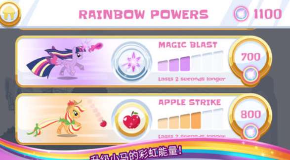 5、收集小马能量,升级小马的彩虹能量;