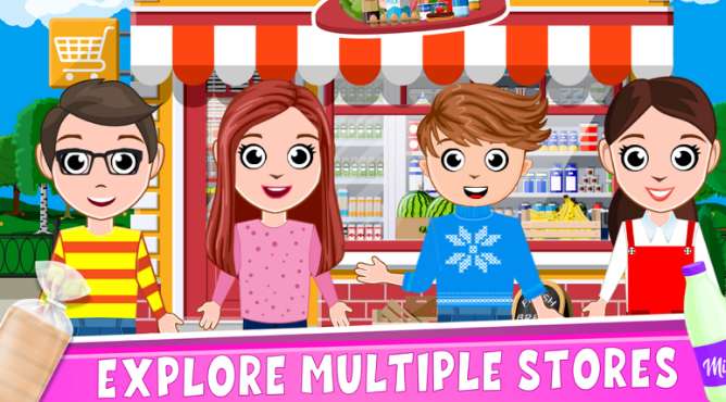 欢迎来到假装镇购物店! 新商场在您家附近开业,与您的学校朋友一起去购物市场购买商品。