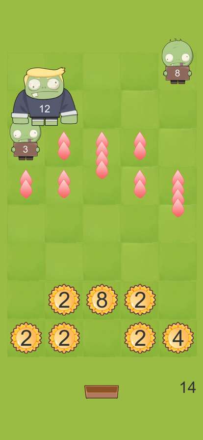 「2048」合成等玩法的策略塔防游戏,且这些玩法被融合进了「攻击种子 - 获得植物朵 - 合成植物 - 消除僵尸」这个简单的循环中,