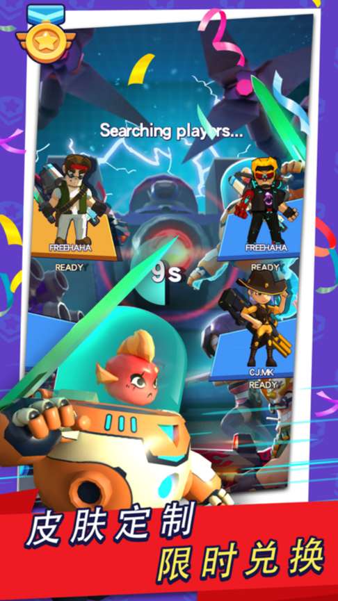 2.最多支持8人在随机地图中你争我夺,占领核能塔获得最终的黄金之星,兑换酷炫的赛季时装.
