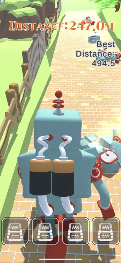 RealRunning中有很多的机器人,玩家的任务就是操纵这些机器人逃命,让它可以顺利跑到游戏的终点,你就能获胜了。还有很多的工厂机器在追捕你,要注意闪避,不要被捉到哦。