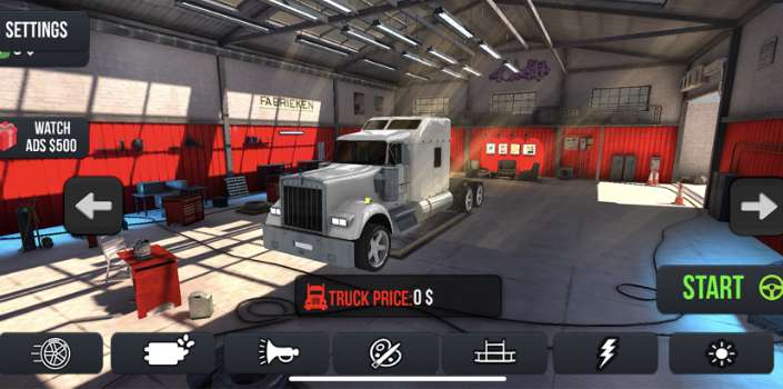 根据您的需要选择货运卡车的轮辋。您可以通过在卡车模拟器游戏中搬运重物来赚钱。