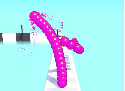 Jiggle Man Run中的主角非常奇特,它是一根弯曲的棍子,而玩家在游戏中的任务就是左右移动这根弯曲的棍子,让它可以顺利到达游戏的终点。同时前方有很多致命的障碍物,小伙伴们要注意哦。