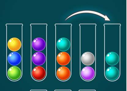 1. 在不同的玻璃管中对相同颜色的球进行分类,直到在管中得到相同的分类球。