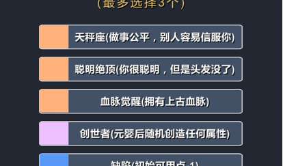 修仙模拟器是一款修仙游戏,在游戏中有数不清的趣味修仙剧情,玩家将会扮演一名修仙人员参与这里的冒险,在你出生开始,就能获得一些天赋,你可以根据个人的喜好完成选择,然后带着这些天赋进行冒险。