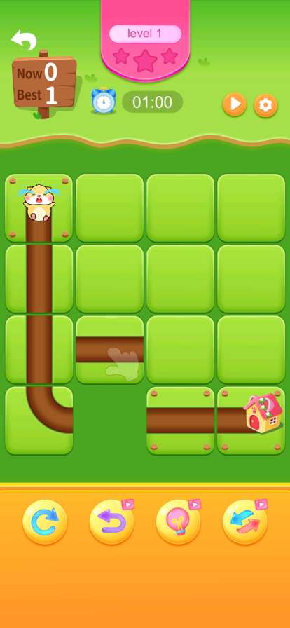 1、可爱可爱的游戏场景非常治愈。为了防止仓鼠受到伤害,我们需要动脑筋帮助它逃离这里。