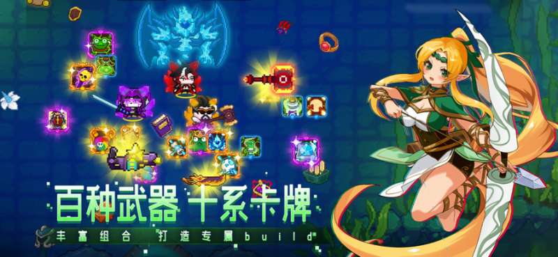 多种元素冒险关卡随机出现,上百种武器宝物,任意搭配组合。