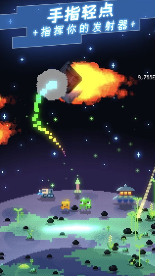 1、点击或者滑动屏幕可以击碎天空中飞过的陨石。
