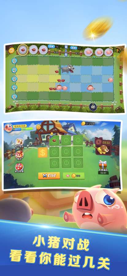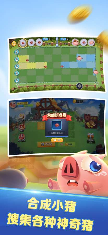 赢取更多金币,合成更高等级小猪!