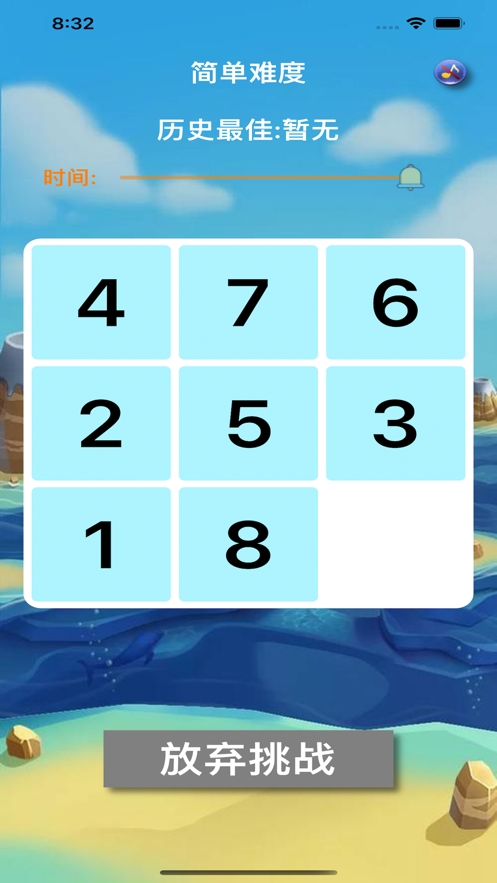 3、限时模式和无限模式任你选择,系统在九宫格中随机生成1-8个数字和1个位置等你移动。