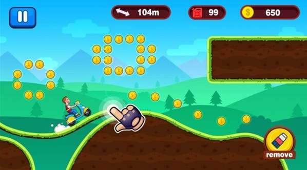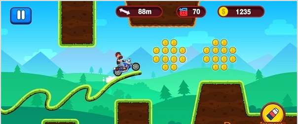 山地越野大冒险为用户朋友带来了一系列的跑酷冒险玩法,如果用户朋友有信心的话,就可以驾驶摩托来收集这些硬币,收集的越多,你可以获得的奖励也就越多,试试看你能闯到哪一关吧。