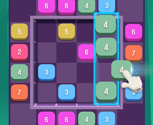 3、看到编号的正方形吗,将正方形放在一起,将三个或四个相同编号的方块排成一行以消除。