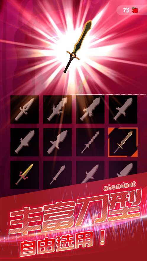 游戏中有多种不同的关卡和难度可供选择,每个关卡都有其独特的挑战和乐趣。除了用刀击打的乐趣外,爱刀的人还可以享受投掷刀的奇妙乐趣!玩法简单刺激,是一款非常适合休闲娱乐的游戏。