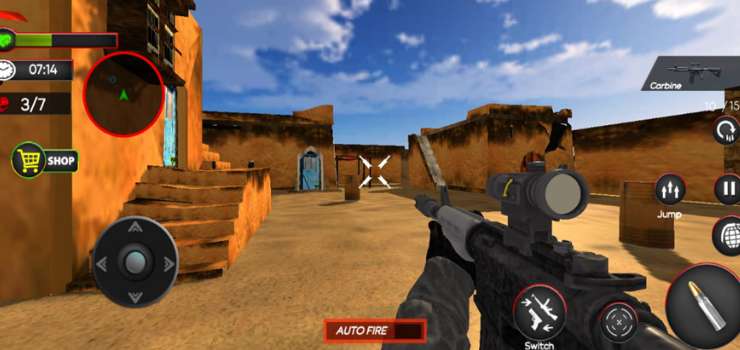 针对所有的手机,FPS射击游戏已经开发出来,接受任务挑战,进入一场盛大的大逃杀升级你的角色,并邀请你的朋友与你玩枪游戏与简单的控制和自动射击。
