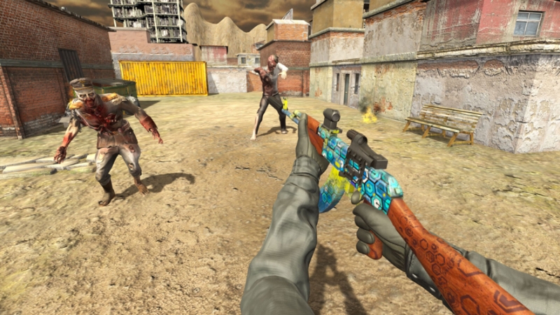 游戏采用了第一人称视角,能够让玩家体验到最真实的射击乐趣。要注意僵尸们会从四面八方向你进攻,你要时刻保持警惕并小心你的背后,没准正有一个僵尸在虎视眈眈的看着你。