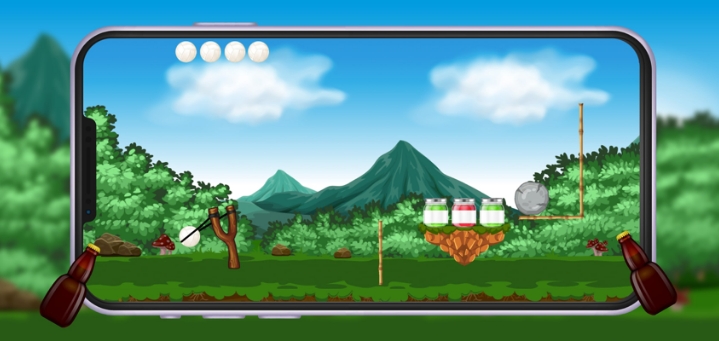 Bottle Shooter Game的游戏地图中有很多的啤酒瓶,玩家在这里需要找出啤酒瓶然后用球来击碎它们,全部击碎完成后即可完成闯关。这里还有很多的地图,每完成一个就能解锁下一个地图。