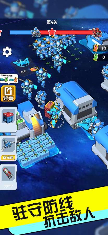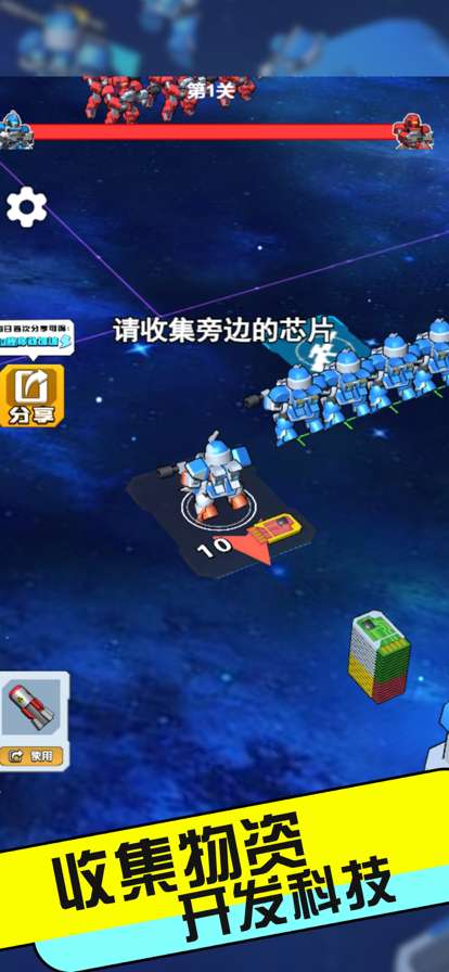 集结军队向敌方发起进攻,收集敌方散落芯片升级。