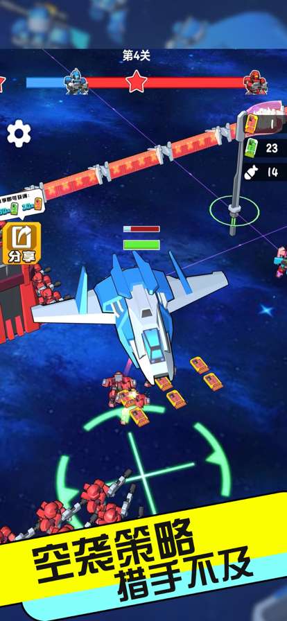 可以利用战斗机、核弹、空投武器或物资提升己方战斗力。