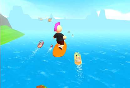 Hook\'n Roll中有一场奇妙的溜冰冒险,玩家加入游戏后,需要将自己手中的绳子扔到汽车或者直升机上,这样你就能在它们的牵引下继续滑冰的,当你顺利滑到游戏的终点,胜利就是你的了。