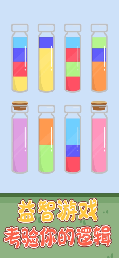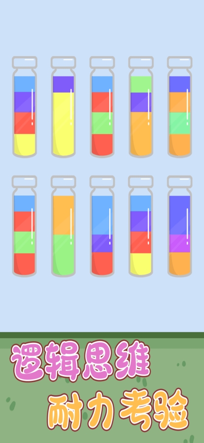 是一款水排序的解迷手机游戏,是一款比较流行和有趣的烧脑颜色排序游戏。