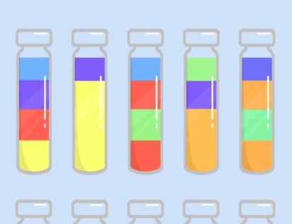 玩法机制非常简单容易。 你可以试着对玻璃瓶中不同颜色的水进行分类,最后将每种颜色的水倒入玻璃瓶中,游戏关卡后期难度会更高。