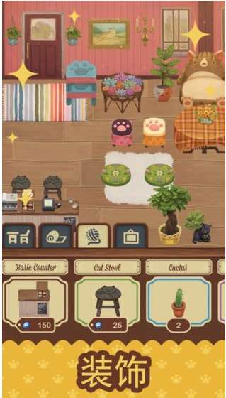 资金赚取:玩家需要通过出售小猫来赚取资金,用于扩大咖啡馆规模和升级设施。