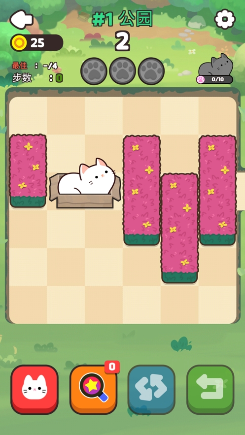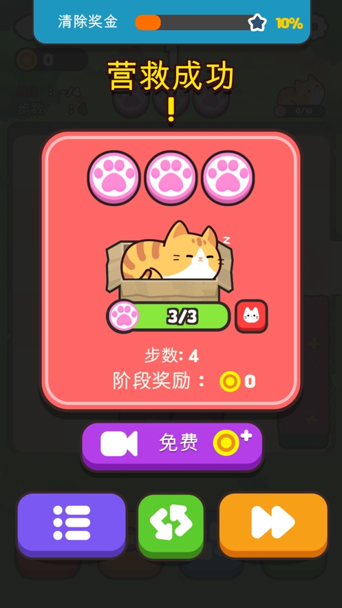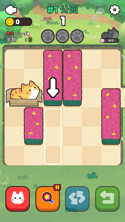 通过解救猫咪来增加与猫咪的亲密度,移动障碍物的次数越少,亲密度提升得越快。