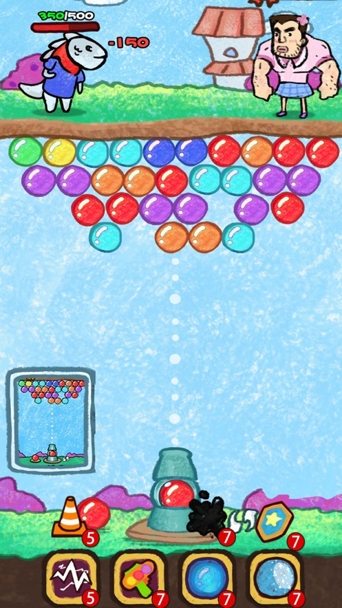 在泡泡骑士这款游戏中,玩家将会收到多彩的泡泡,小伙伴在这里需要将合适颜色的泡泡听过大炮发射到上空,当三个颜色的泡泡集结在一起,泡泡就会消失,还能为玩家带来更多的积分奖励。