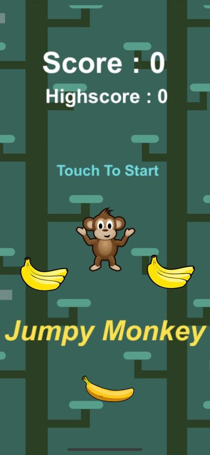 在Monkey Jumpy这款游戏中,玩家将会作为一名可爱的猴子进行闯关。在这里有很多的香蕉,玩家扮演的小猴子想要吃到这些香蕉,就要不断向上爬,玩家收集香蕉到达一定分数后,即可解锁下一关。