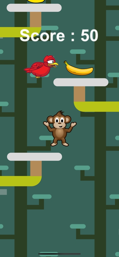 玩家在操纵小猴子向上收集时可能会遇到障碍物和其他敌人,小心不要撞到这些敌人,如果撞到,游戏就会直接结束。同时还有排名系统,你可以邀请自己的好友来一较高下。