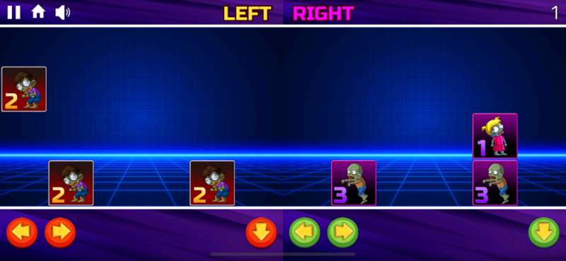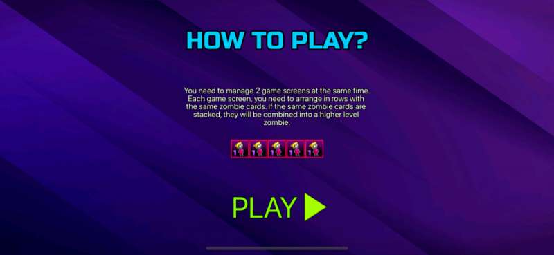 在每个游戏屏幕上,你都需要将相同的僵尸卡片排列成行。