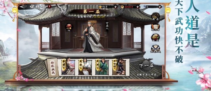 独特的冒险世界感受全新的竞技历险,随机生成的敌人和地图开启你的武林闯关之旅。