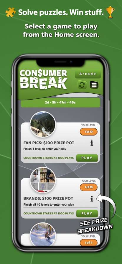 如现金和产品-或解决谜题赚取非即时游戏,优惠券和其他奖励!