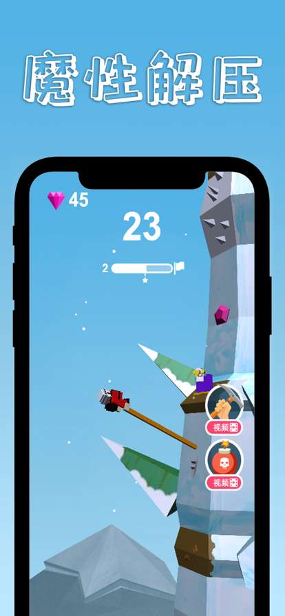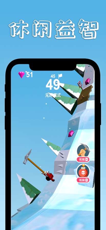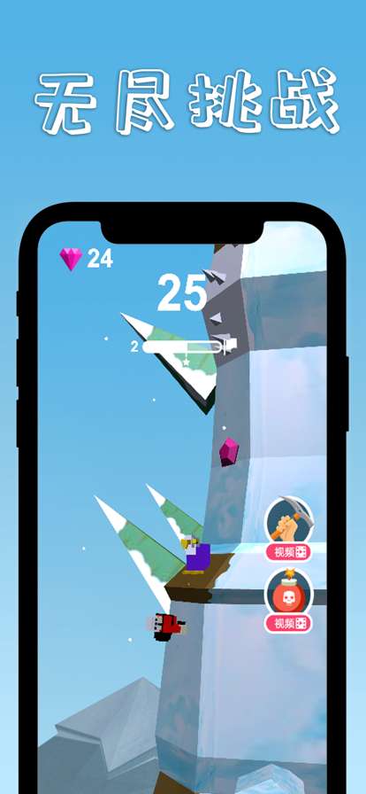 游戏中有无穷无尽的挑战,玩家完成这些挑战还能获得一些奖励,解锁更多的战斗技能。在前方还有各式各样的道具,你可以利用这些道具提升自己的爬山效率,还能更新模式,享受更多的爬山冒险。