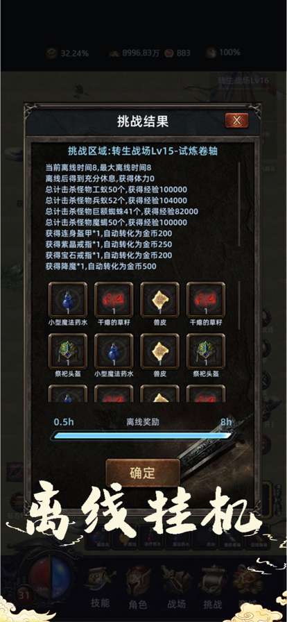 放置挂机玩法:在游戏中,你可以选择放置挂机模式。即使离线也能获得丰厚的奖励和经验。时间自由,奖励丰厚,让你轻松升级。