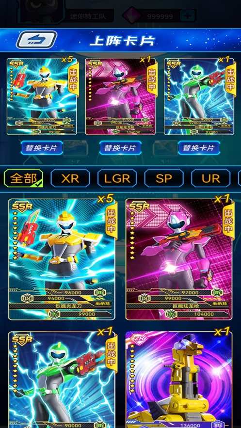 从低等级的R卡到最高级的XR卡,玩家可以浏览自己抽到的卡牌,